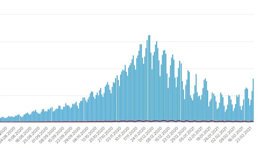 Дата: 3 березня 2021, 08:23 Автор: Категорії: Covid-2019, коронавірус, епідемія За добу 2 березня в Україні COVID-19 діагностували 7 235 особам, у лікарні поклали 3 486 осіб із коронавірусом чи підозрою на нього, померли 185 хворих, одужали 5 118 осіб.Джерело: міністр охорони здоров’я Максим Степанов уFacebookі даніРНБОДеталі:Серед нових хворих – 429 дітей та 319 медпрацівників.Найбільше […]