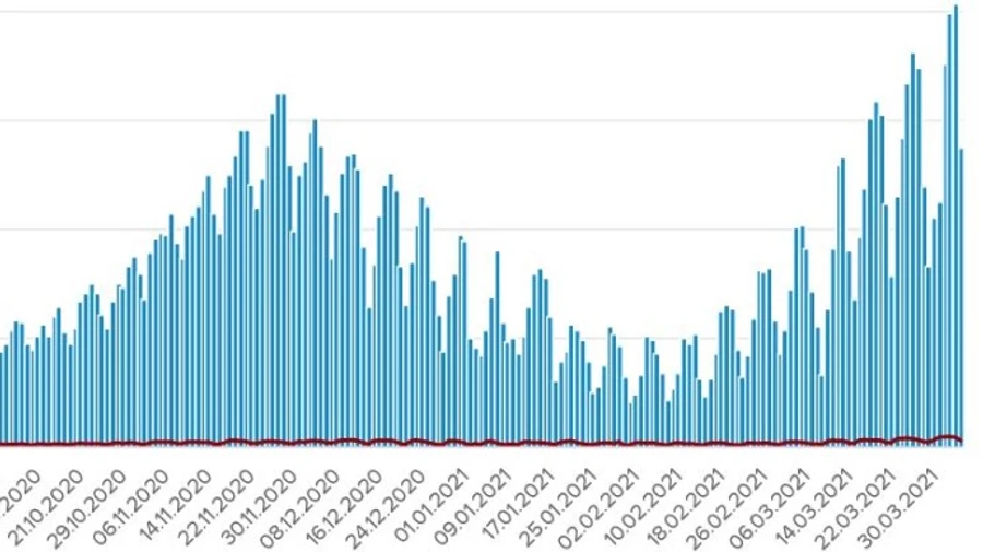 Дата: 4 квітня 2021, 08:28 Автор: Категорії: коронавірус, епідемія, Харківська область Протягом суботи, 3 квітня, в країні виявили ще 13 738 випадків коронавірусної хвороби, найбільше – у Харківській області.Джерело:повідомленняміністра охорони здоров’я Максима СтепановаДеталі: Серед 13 738 нових випадків – 504 дитини та 216 медпрацівників.За минулу добу госпіталізували 5 545 заражених,летальних випадків – 258. При цьому […]